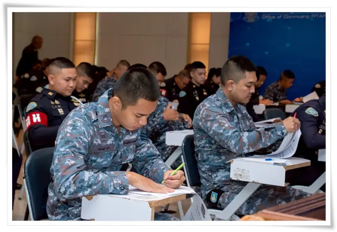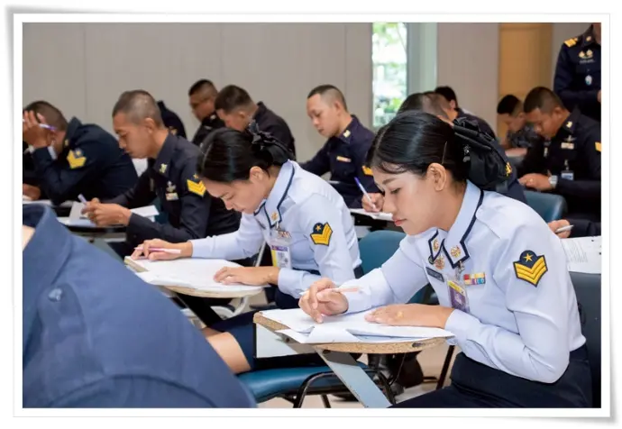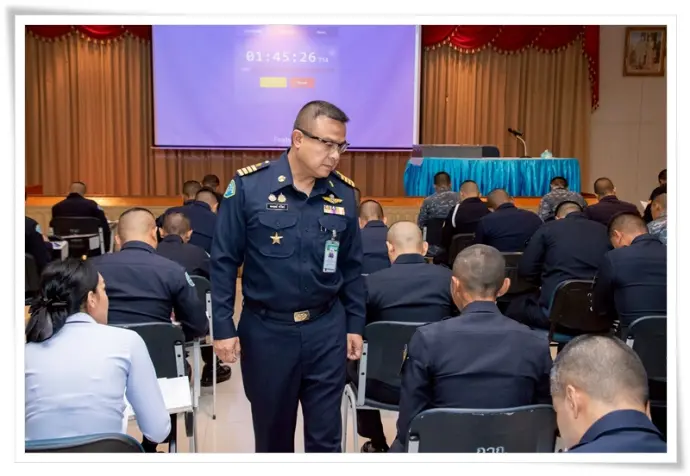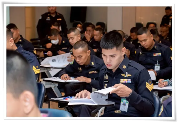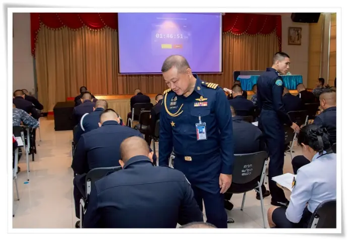 นาวาอากาศเอก จารุวัฒน์ วัดละเอียด เสนาธิการสำนักงานผู้บังคับทหารอากาศดอนเมือง ตรวจเยี่ยมการทดสอบความรู้ความสามารถของสายวิทยาการเหล่า ทหารสารวัตรก่อนเข้าดำรงตำแหน่ง พันจ่าอากาศเอก และพันจ่าอากาศเอกพิเศษ ประจำปีงบประมาณ 69