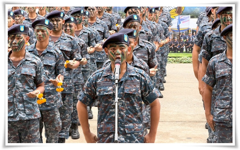 พูดคุยและรับประทานอาหารร่วมกันระหว่างทหารใหม่กับผู้ปกครอง โดยมี นาวาอากาศเอก ชยกร โชติพิทยานนท์