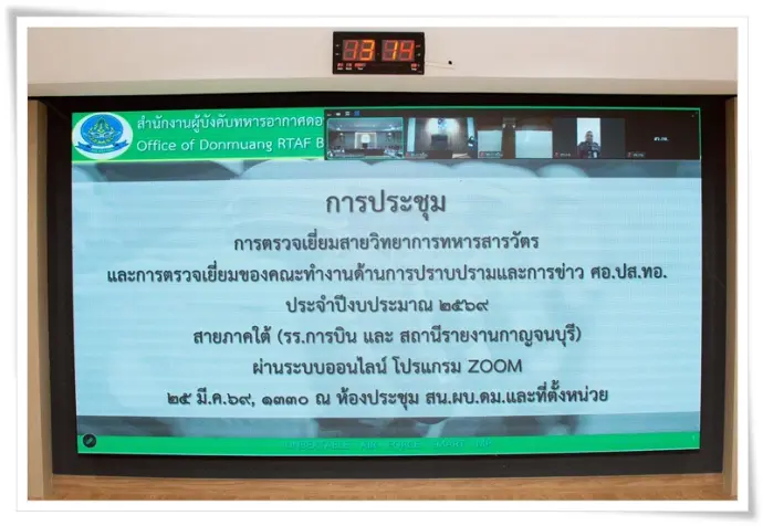 และการตรวจเยี่ยมของคณะทำงานด้านการปราบปรามและการข่าว ศูนย์อำนวยการป้องกันและปราบปรามยาเสพติดกองทัพอากาศ รร.การบิน และ สร.กาญจนบุรี ประจำปีงบประมาณ 2569 ผ่านระบบออนไลน์ โดยใช้โปรแกรม ZOOM