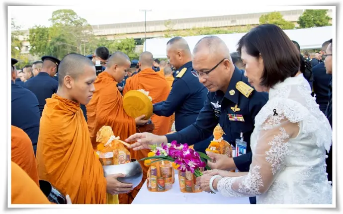 นำ กำลังพล สำนักงานผู้บังคับทหารอากาศดอนเมือง ร่วมงานทำบุญตักบาตรเนื่องในวันขึ้นปีใหม่ ประจำปี 69