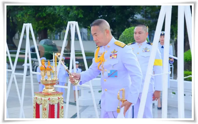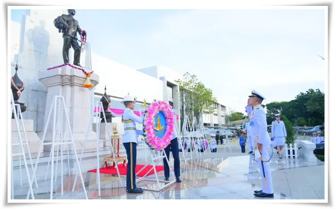 พลอากาศตรี อนิรุทธ์ รัฐพร ผู้บังคับทหารอากาศดอนเมือง เข้าร่วมพิธีวางพวงมาลาถวายราชสักการะ