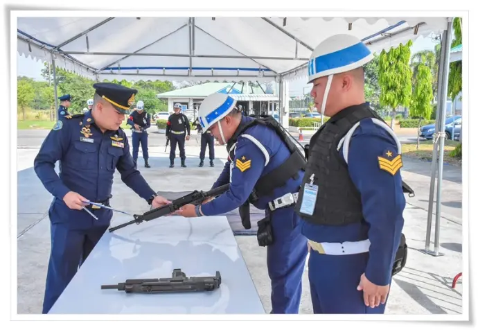 ทั้งนี้ ได้สร้างขวัญกำลังใจ โดยมอบเงินรางวัลให้กับกองร้อยทหารสารวัตร กองบิน 23 ที่มีผลคะแนนทดสอบความพร้อมรบ และทดสอบแผนป้องกันที่ตั้งของหน่วยกองทัพอากาศ ได้เป็นลำดับ ๓ ในส่วนสารวัตรทหาร ประจำปี 68 และมอบสิ่งของที่จำเป็น ให้กับเจ้าหน้าที่สารวัตรทหารอากาศ เพื่อเป็นขวัญและกำลังใจในการปฏิบัติหน้าที่ต่อไป