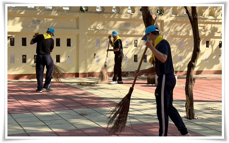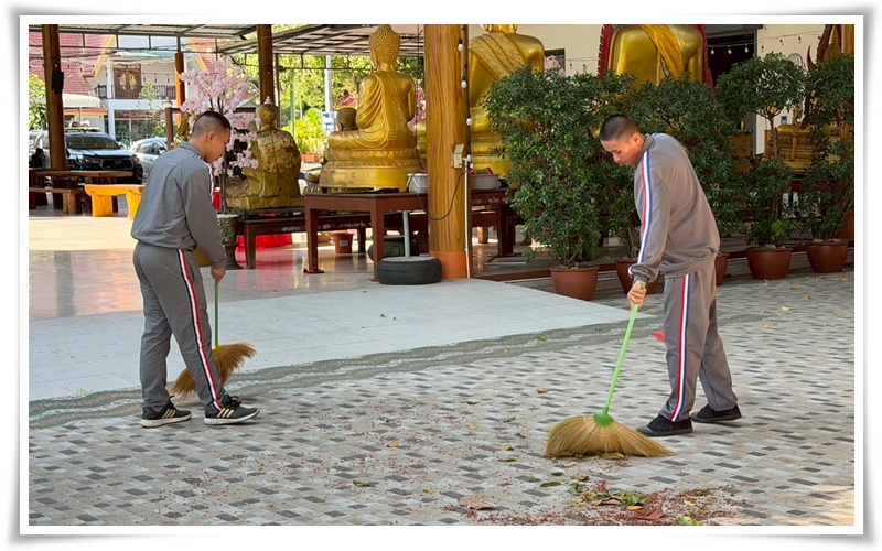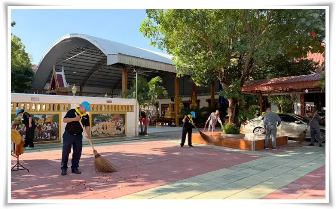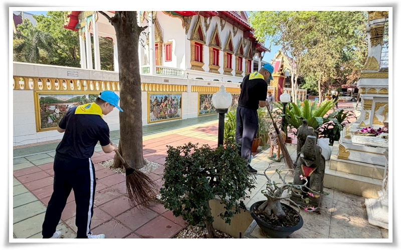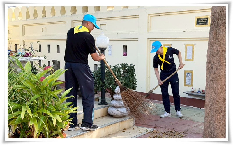 บำเพ็ญสาธารณประโยชน์ ทำความสะอาด บริเวณโดยรอบพระอุโบสถ